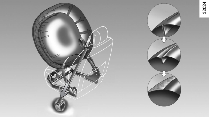 - 대형 에어백: 에어백의 재봉선이 뜯어지면서 에어백이 더 큰 부피로 부풀어 오릅니다(큰 충격의 경우).