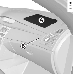 스티어링 휠과 대시보드(B 위치)에 "SRP AIRBAG" 마크가 있어 에어백이 장착되어 있는 지 알 수 있습니다.