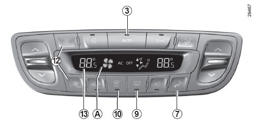 스위치 12를 눌러 송풍 속도를 조절할 수 있습니다. 송풍 속도가 디스플레이 A에 표시됩니다.