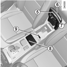 버튼 5를 누르고 커버 6을 들어 올립니다. 휴대전화와 휴대용 오디오 기기 등을 보관할 수 있습니다.