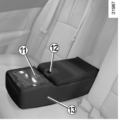 12를 누르면서 리어 시트 암레스트 보관함의 커버를 들어 올립니다.