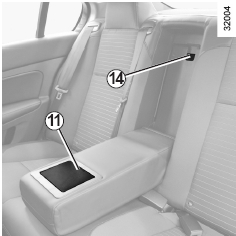 참고: 트렁크 연결 통로 사용 시 리어 시트 암레스트에 있는 컵 홀더 커버 11을 닫으십시오