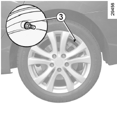 밸브 3에 장착된 개별 센서는 각각의 휠에만 사용할 수 있습니다. 휠 위치를 교환하고 시스템을 재초기화하지 않으면 시스템이 각각의 휠 위치를 잘못 인식할 수 있습니다. 시스템의 재초기화는 지정 정비업소에서 할 수 있습니다.