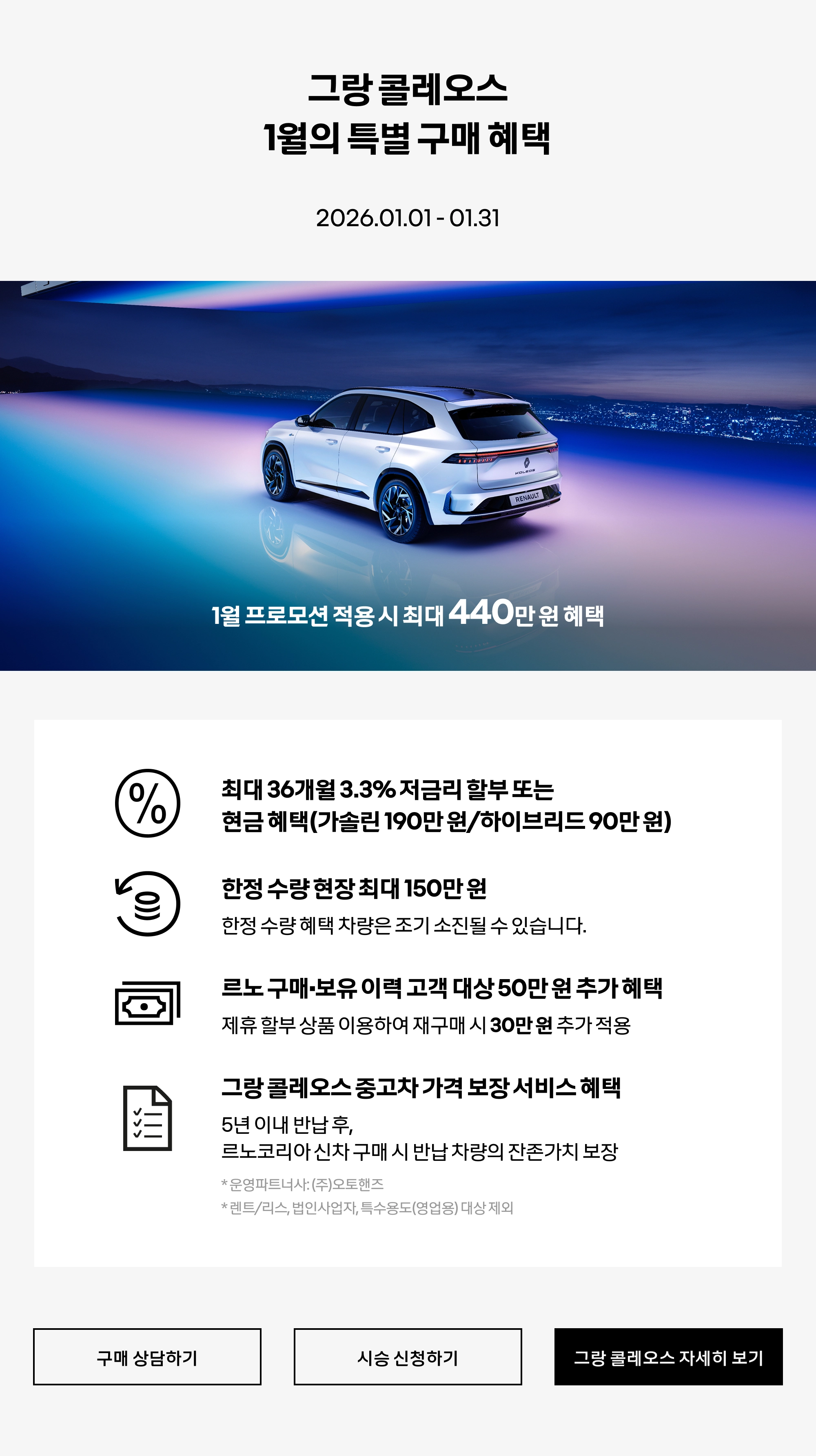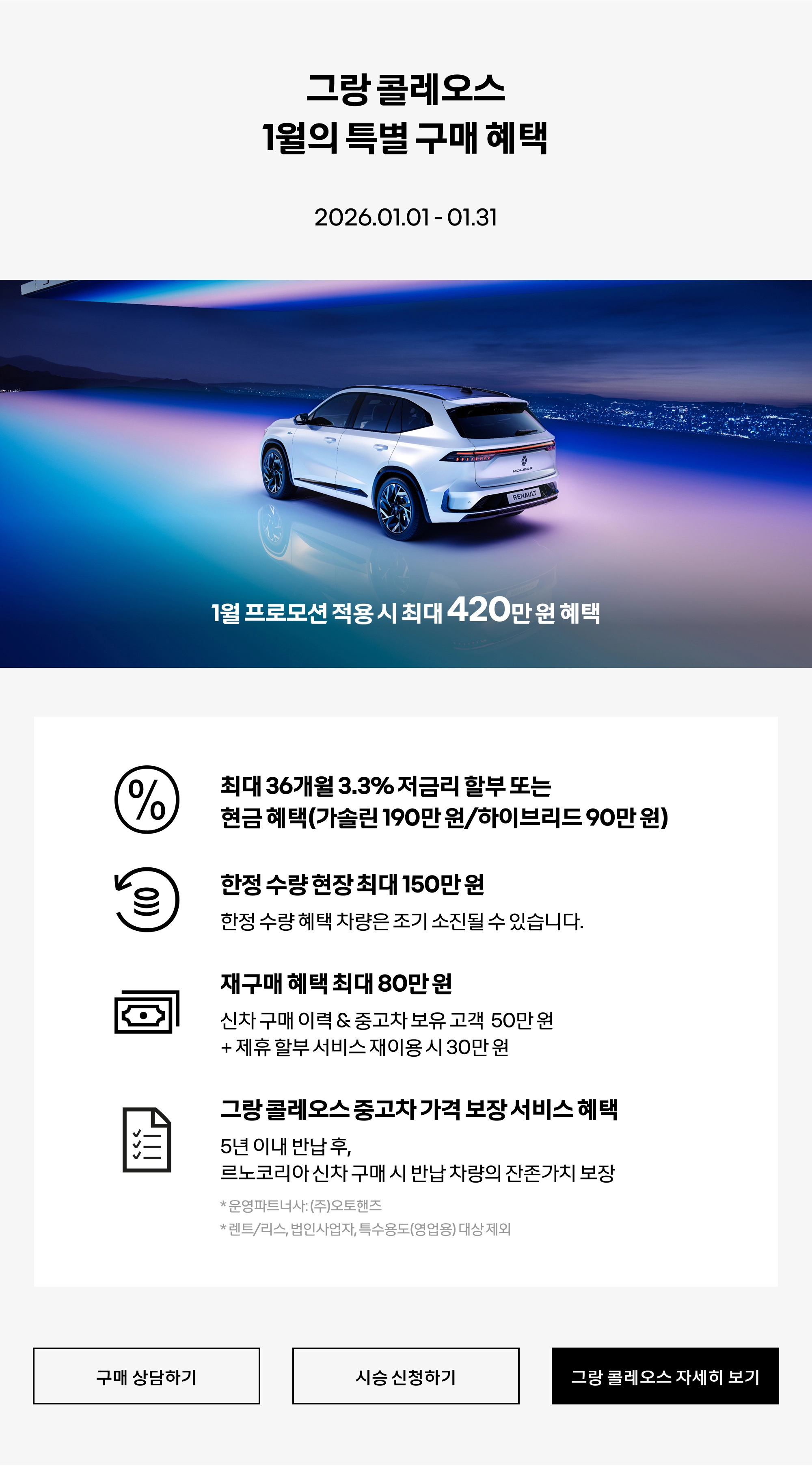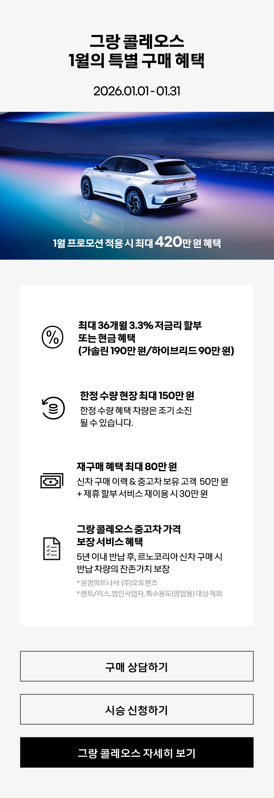 그랑 콜레오스 자세히 보기 이달의 혜택 자세히 보기