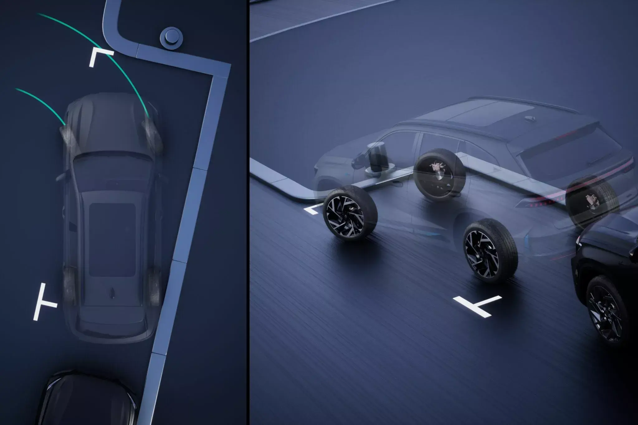 FULL 오토 파킹 초음파 센서와 카메라가 장애물, 주변 사물, 주차 공간을 스스로 감지하고 측정하여 주차 과정을 자동으로 수행합니다.